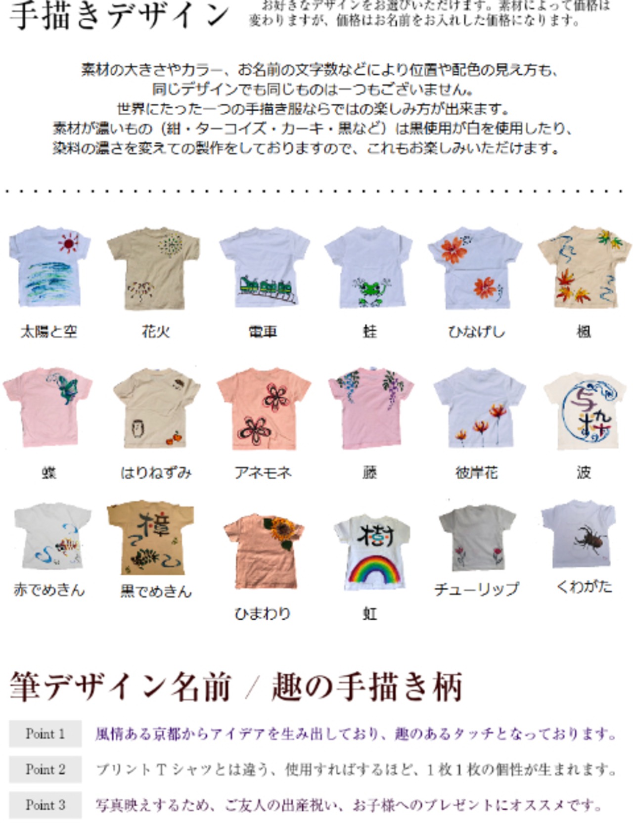 ご注文頂いてからの一人の製作者により一筆一筆書かせて頂くので、きっと成長と共にご家族の思いでにもなる世界にひとつの洋服になります。